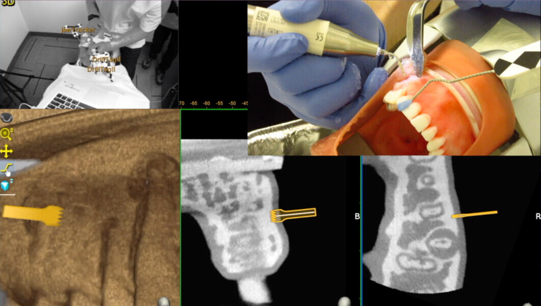 Fig. 2: An optical tracking sensor tracks the Jaw-Tracker, Tracer Tracker, Drill-Tracker and instrument.