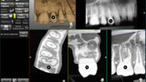 Fig. 3: The screen is divided into (1) panoramic view, (2) 3D reconstruction, (3) axial view, and (4) buccolingual and (5) mesiodistal section views.
