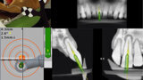 Fig. 9a: Calcified central incisor: (1) the drill is green; (2) the central axis of the glide path or osteotomy; (3) the depth indicator; (4) the angle between the drill and central axis of the planned osteotomy. When the drill and the central axis overlap, the depth indicator turns yellow. (Courtesy of Dr Bobby Nadeau)