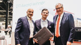 From left: Torsten Oemus, CEO of Dental Tribune International; award winner Dr Robert Gaudin of Charité—Universitätsmedizin Berlin in Germany and Dr Robert Gottlander, CEO and president of Neoss. Dr Gaudin won the first-ever DT Award for outstanding achievements in dentistry on Friday afternoon. (Image: Robert Strehler)