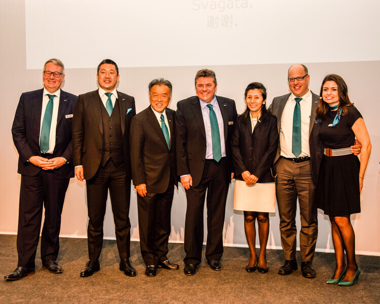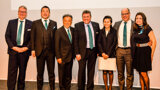 Frank Rosenbaum, Dr Kiyotaka Nakao, Makoto Nakao, Josef Richter, Makiko Nakao, Georg Haux and Gloria de la Torre (from left) got together at the GC press conference for a group photograph. (Photograph: Monique Mehler/DTI)