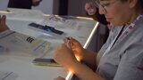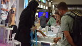 A participant dives deeper into the prevention and the preservation of oral health at the Curaden booth.