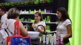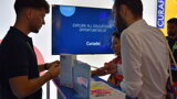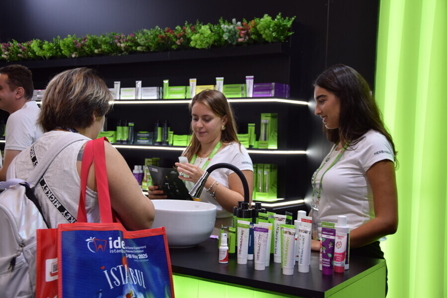 A participant explores the latest in preventive oral care at the Curaden booth.