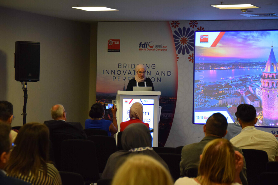 Dr Elham Talib Kateeb leads a session on refugee oral health. (Image: DTI)