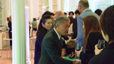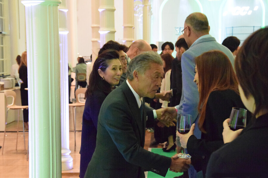 Makoto Nakao, chairman of the board of GC International, and Makiko Nakao, president of the Nakao Foundation for Worldwide Oral Health, were first in line to greet party guests.