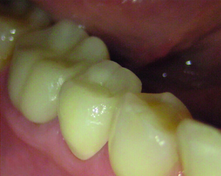 Fig. 22: Choice of shade and position of the graduation for a three-unit posterior bridge.