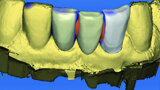 Fig. 13a: Anterior temporary crown printed using a preliminary CEREC 3-D Redcam impression. CAD of the IPS e.max FDP on CEREC inLab 4.3 (a).