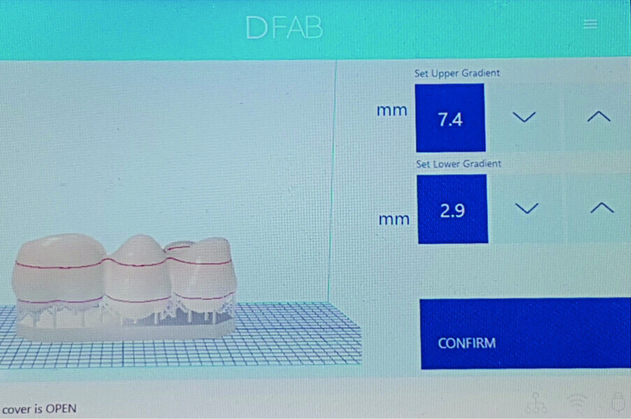 Fig. 21b: 3D printing with Form 2 resin for a complete removable prosthesis (denture base and denture teeth). Denture tooth resin is used for both prosthetic teeth for removable prostheses and temporary teeth.