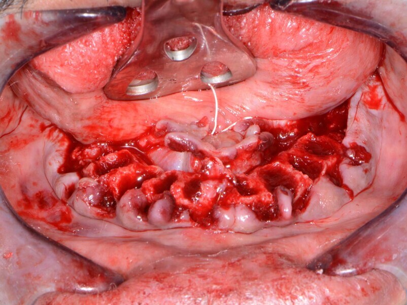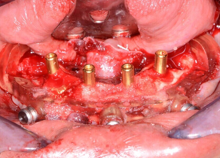 Fig. 16: Overdenture attachments inserted, followed by grafting material.