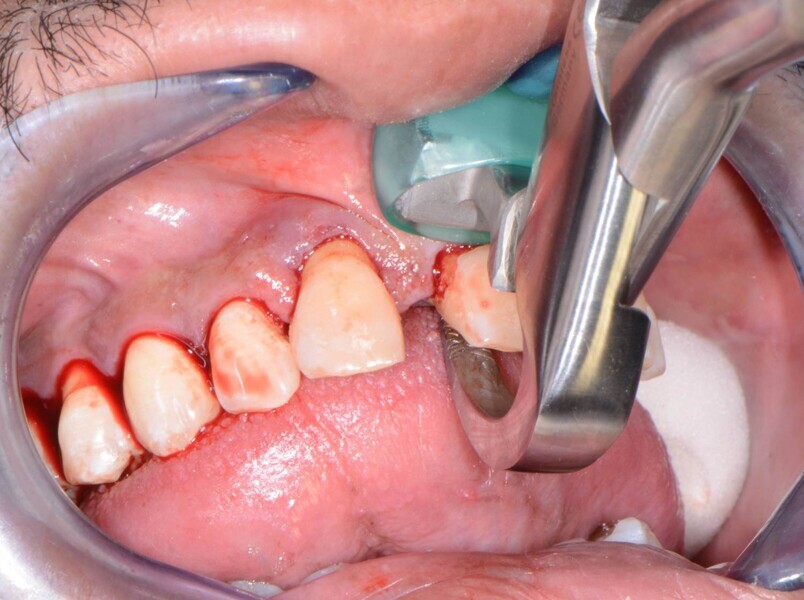 Fig. 11: Removing mandibular teeth.