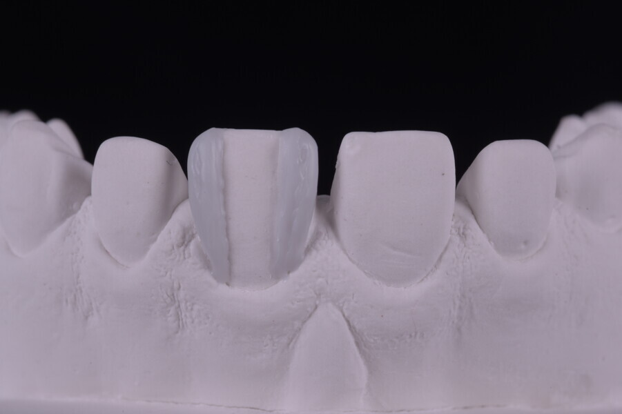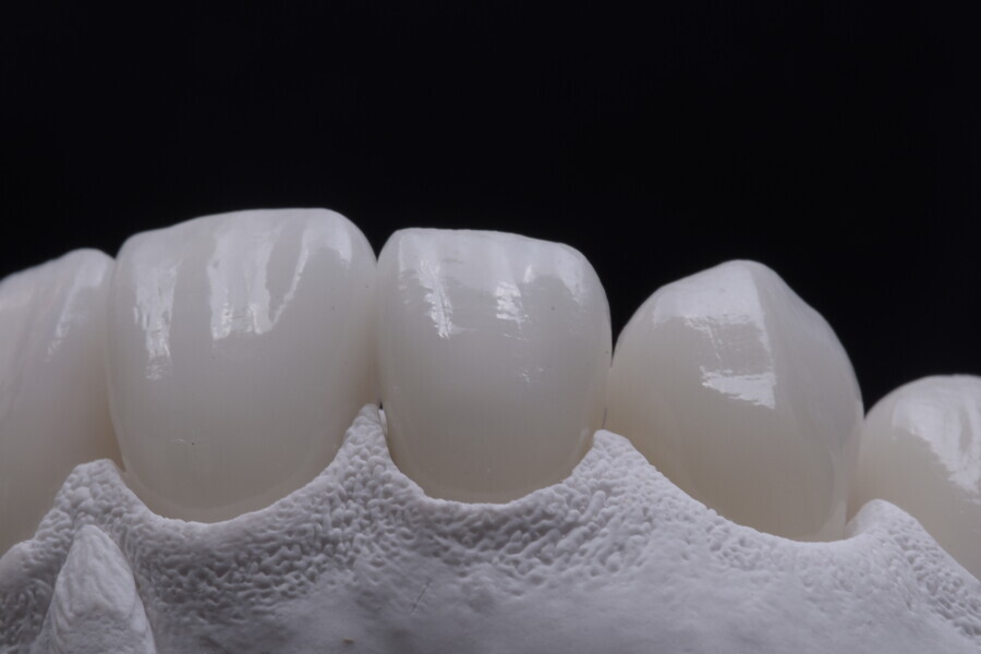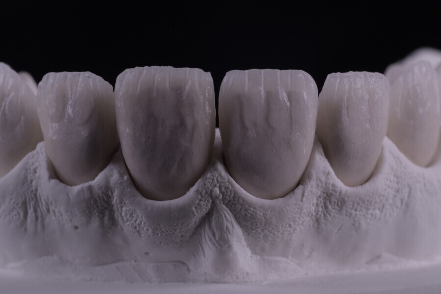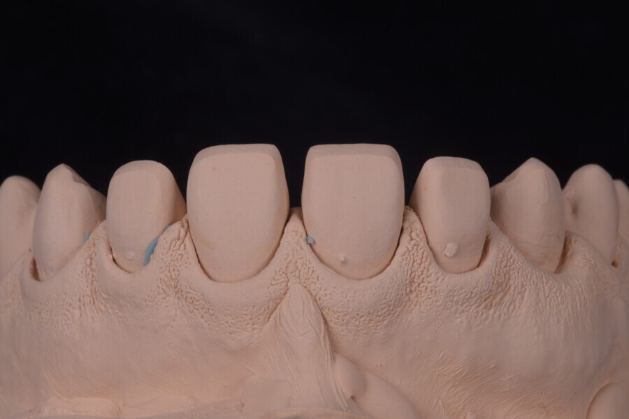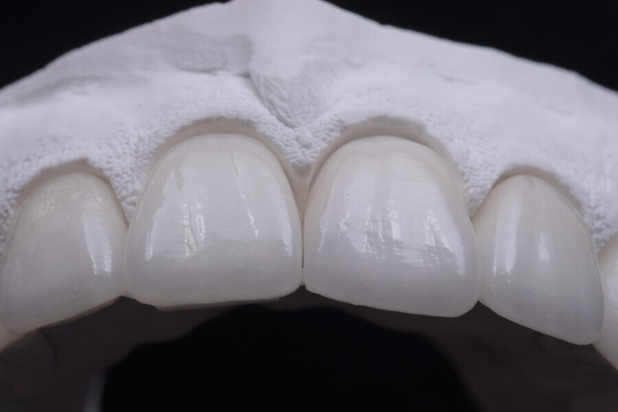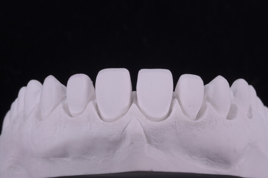 Fig. 75: Glazed ceramic veneers on the plaster model.