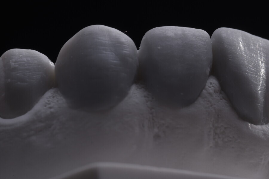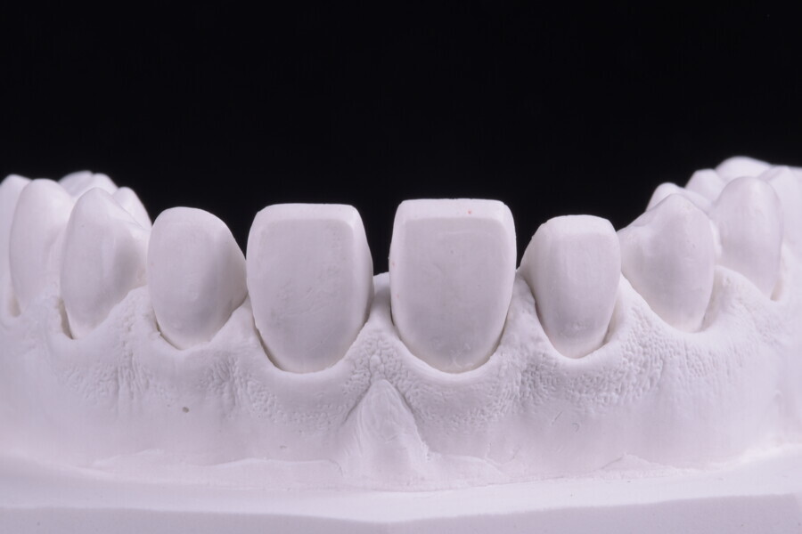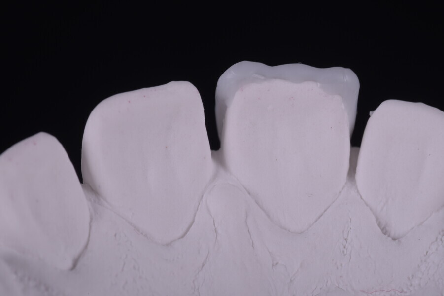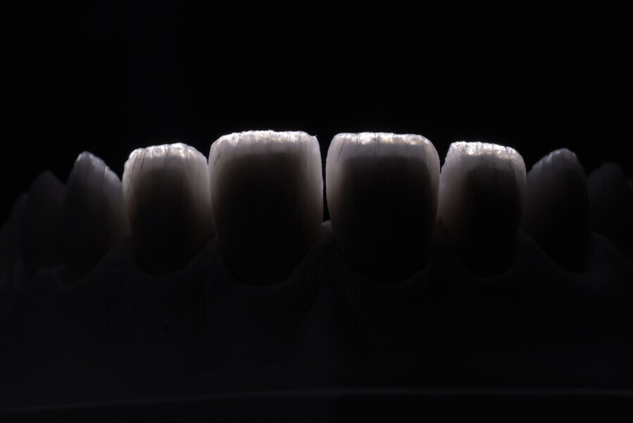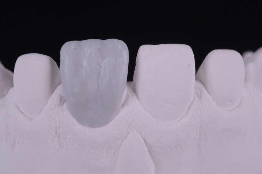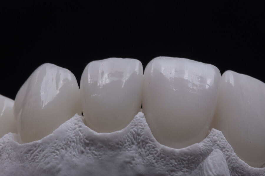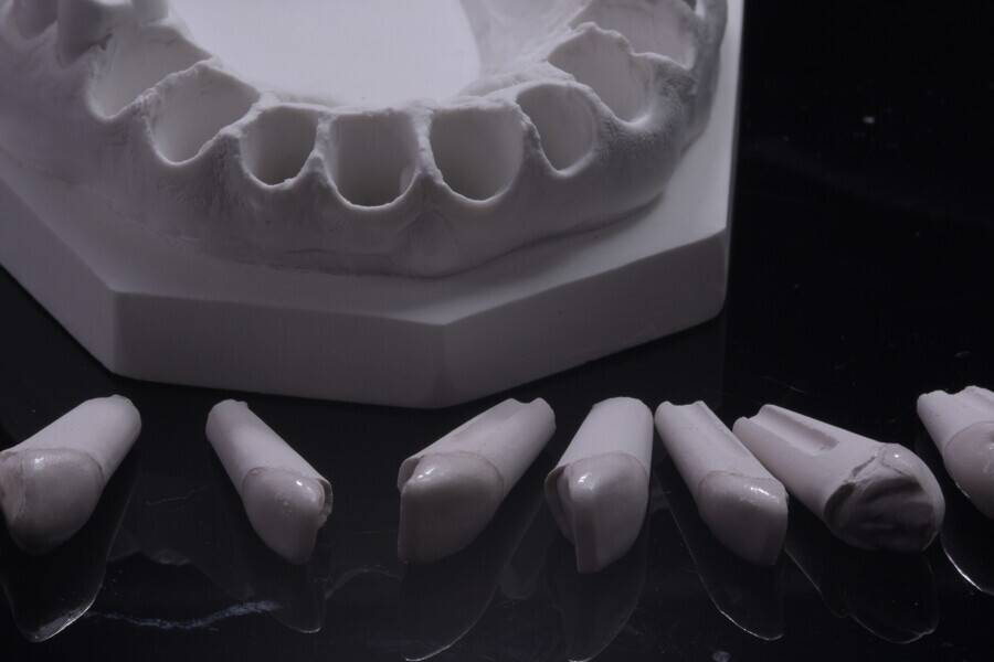 Fig. 75: Glazed ceramic veneers on the plaster model.