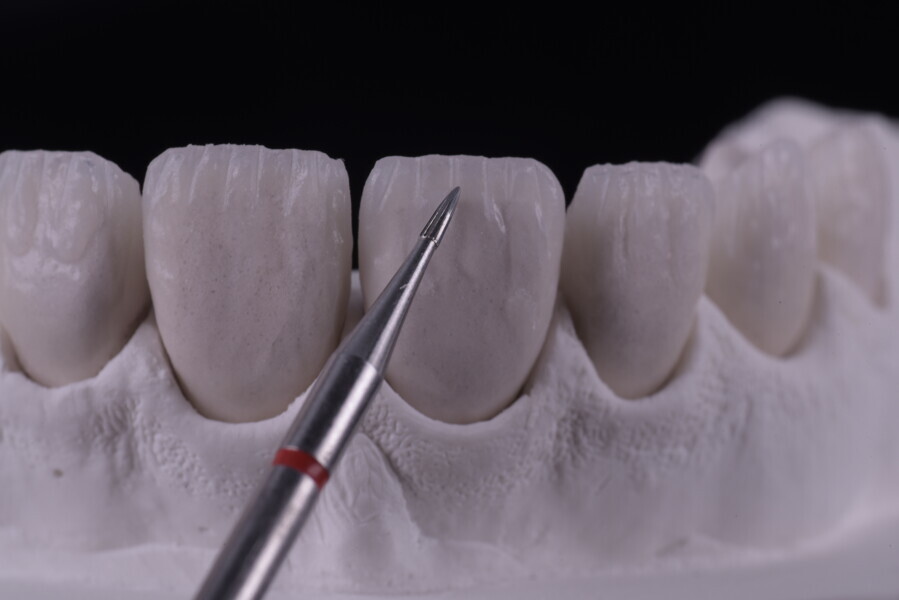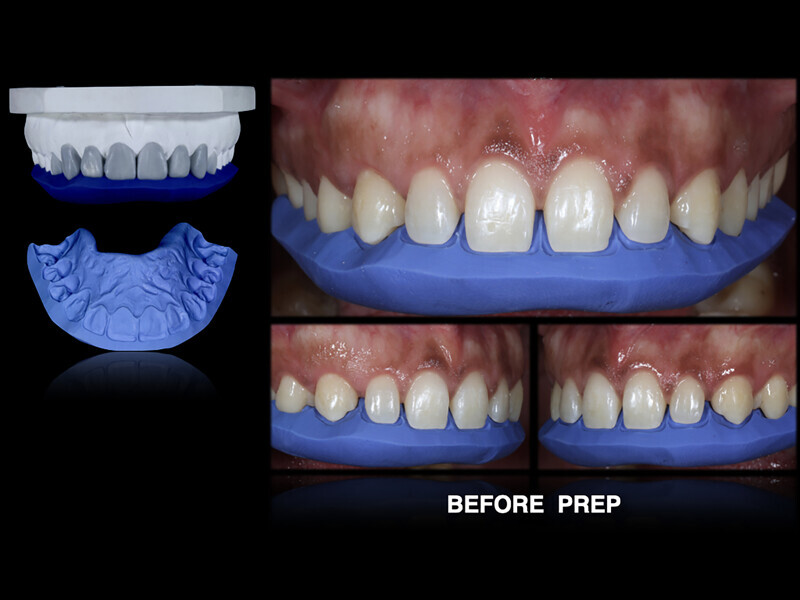 silicone index was used to establish the space on the incisal margin. Steps before, during and after preparation.