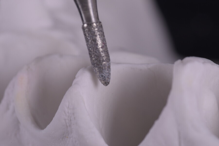 Fig. 70: Tungsten bur being used for waving grooves.