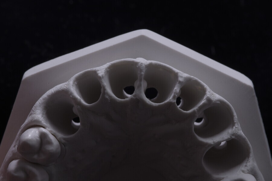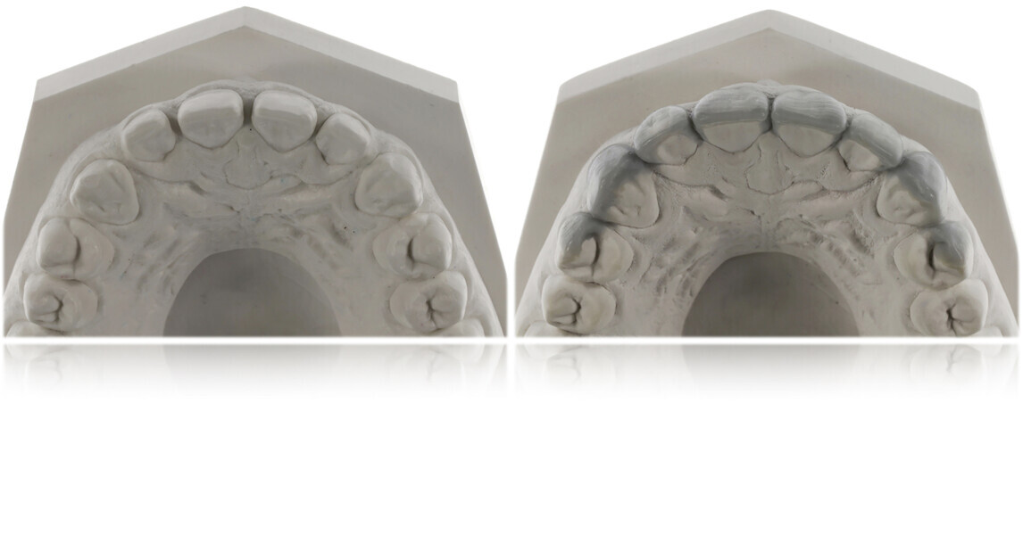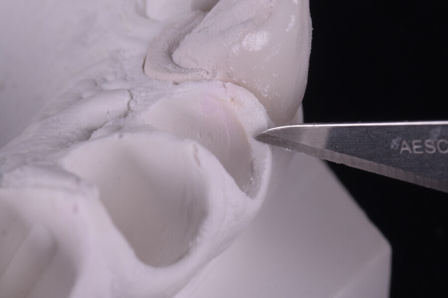 Fig. 34: Sectioned silicone key on the plaster model for laboratory