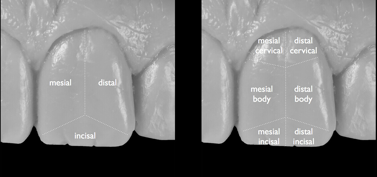 Fig. 18: Segmentation of the tooth and full segments divided into half segments.