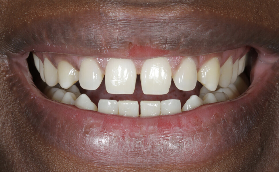Fig. 2: Initial situation with diastemas in the upper and lower jaws.
