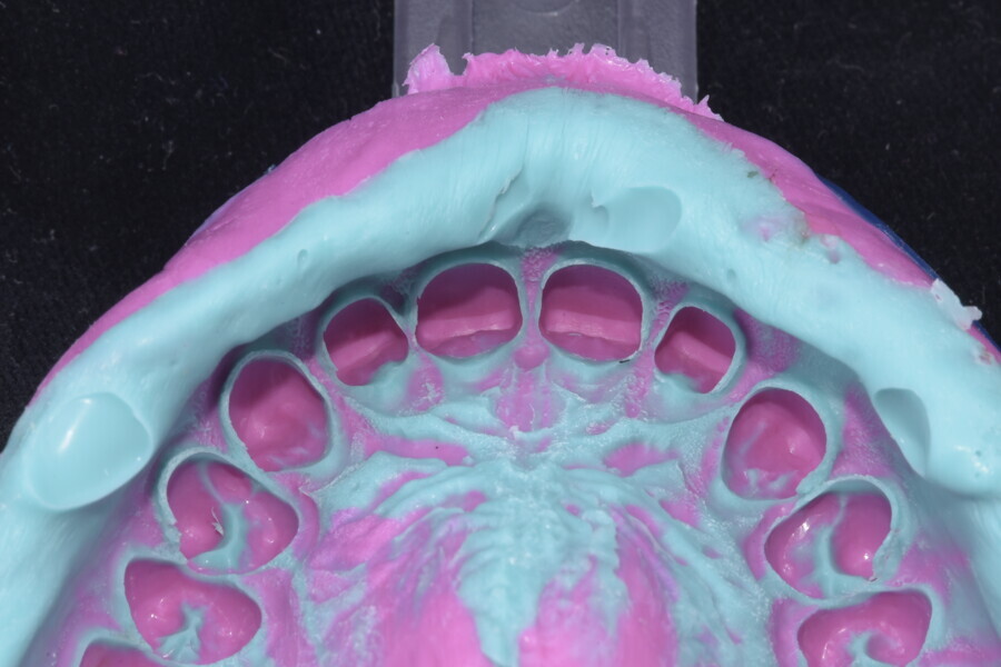 Fig. 35: Sectioned silicone key on the plaster model for laboratory