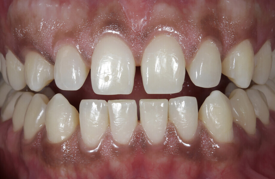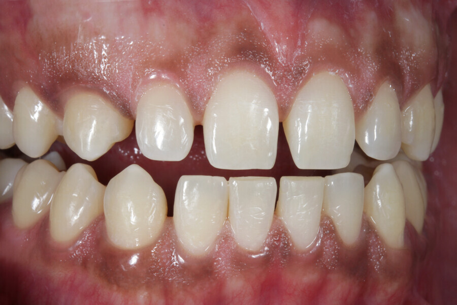 Fig. 1: Initial situation with diastemas in the upper and lower jaws.