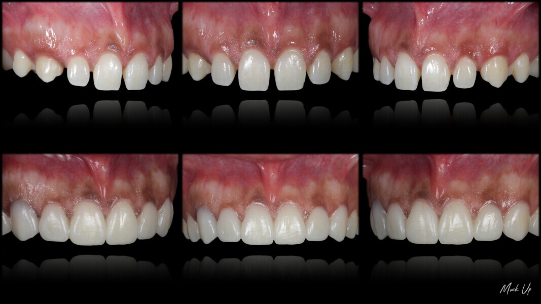 Fig. 49: Mock-up procedures and result in the mouth in order to evaluate the aesthetic relation between the face and the smile.