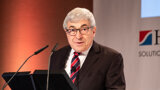 Stanley M. Bergman, Chairman of the Board and CEO of Henry Schein, speaking at the Henry Schein press conference. (Photograph: Robert Strehler, DTI)